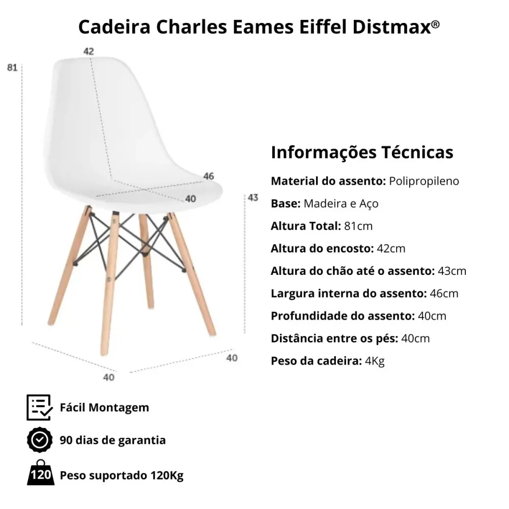 CADEIRA EAMES EIFFEL DSW C/PÉ MADEIRA BRANCO