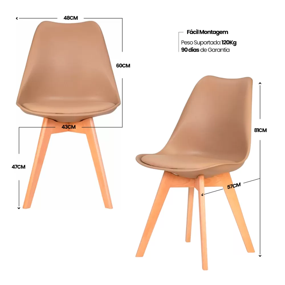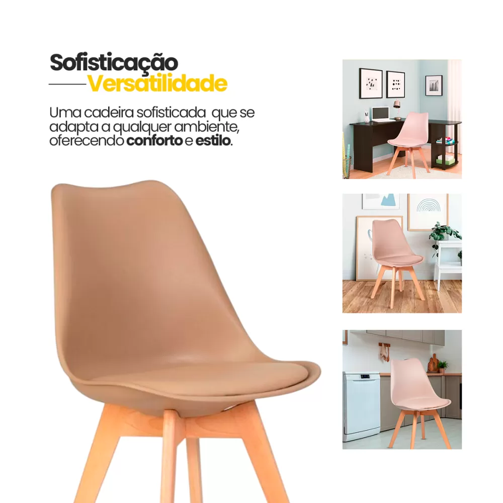 CADEIRA EAMES LEDA MADEIRA C/ALMOFADA COR NUDE (1UN)
