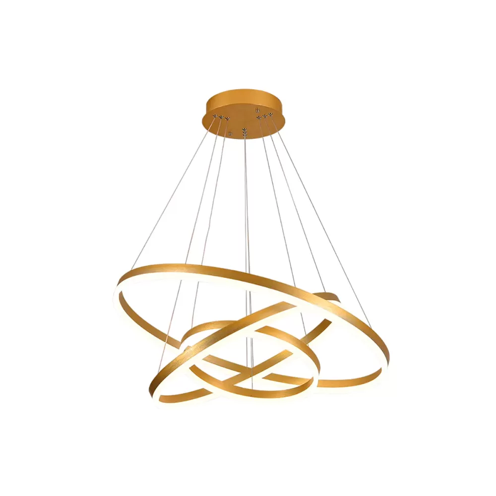 LUSTRE PENDENTE 3 ANEIS LED DOURADO BIVOLT ALUMÍNIO 80/60/40CM