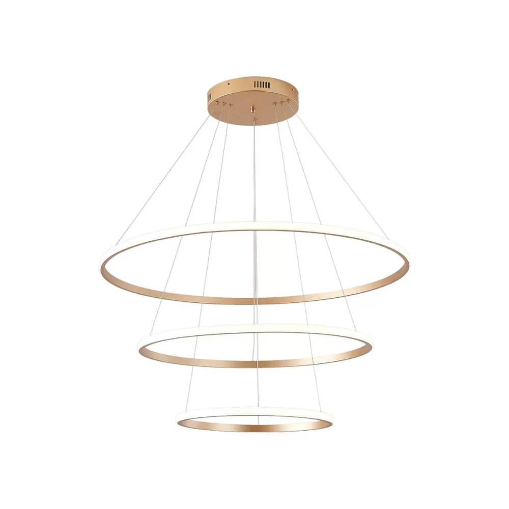LUSTRE PENDENTE 3 ANEIS LED FORA DOURADO