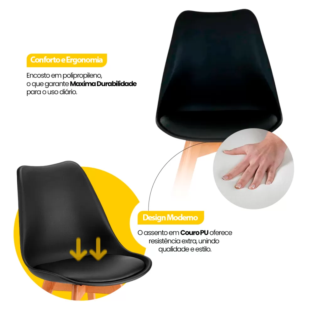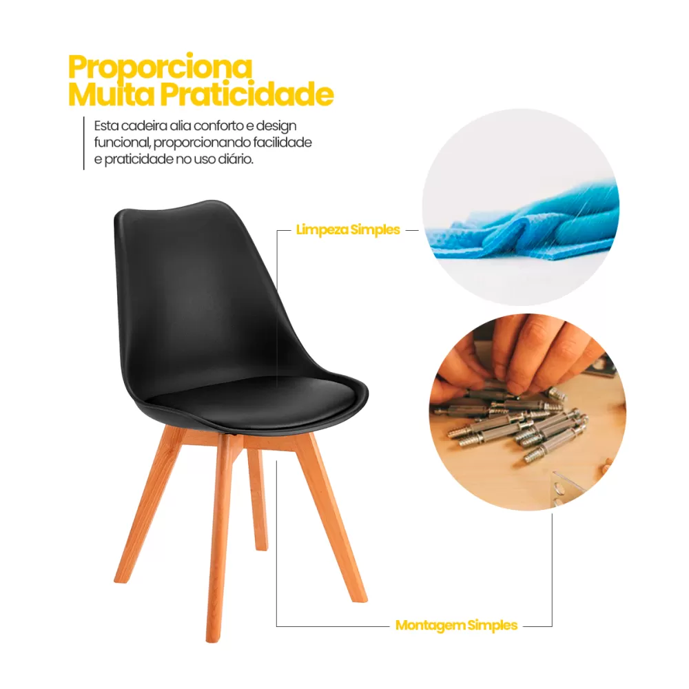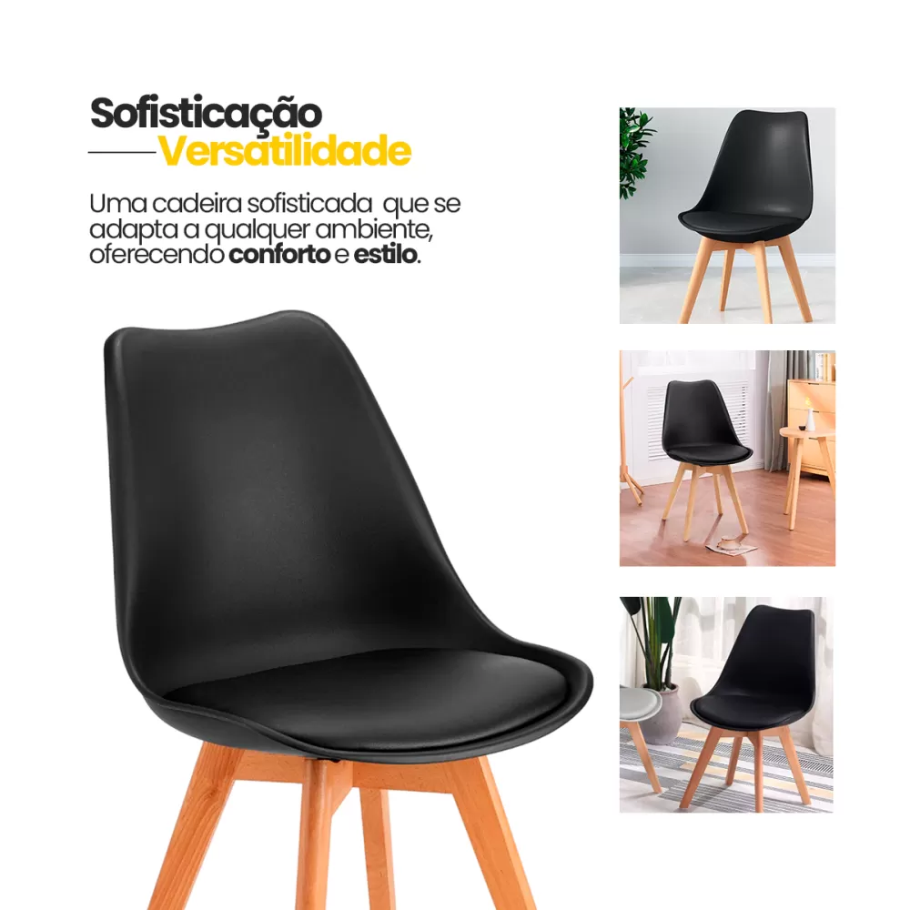 CADEIRA LEDA MADEIRA C/ALMOFADA COR PRETA (4UN)