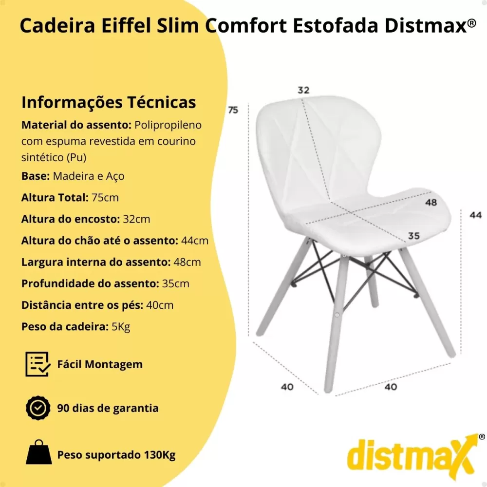 CADEIRA EIFFEL SLIM ESTOFADA WOOD CONFORT BRANCA (4UN)