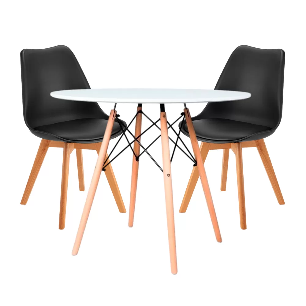 KIT MESA EIFFEL BRNACA 90CM C/2UN CADEIRAS LEDA PRETA