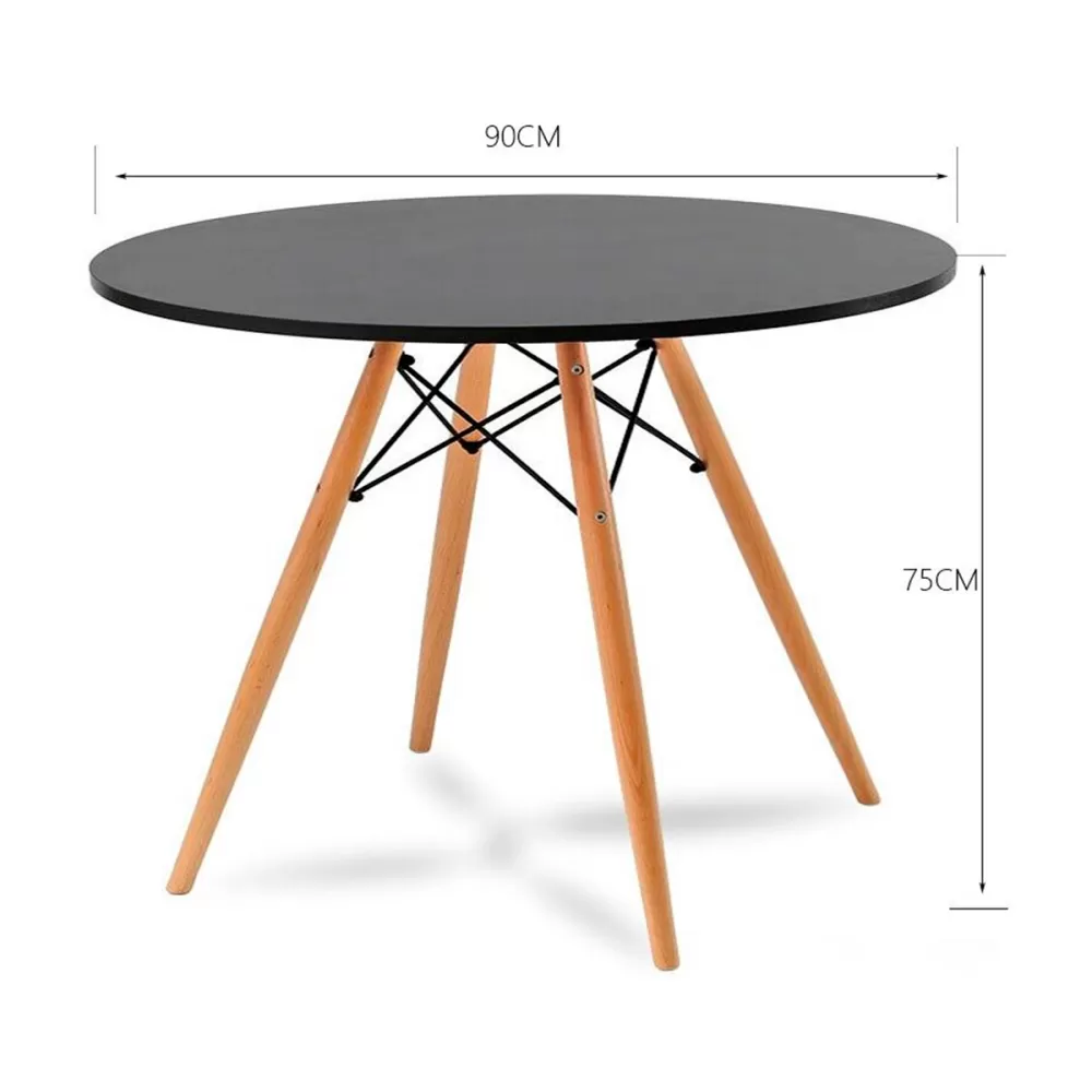 KIT MESA CHARLES EIFFEL REDONDA 90CM BRANCA C/4 CADEIRAS SLIM EIFFEL PRETA