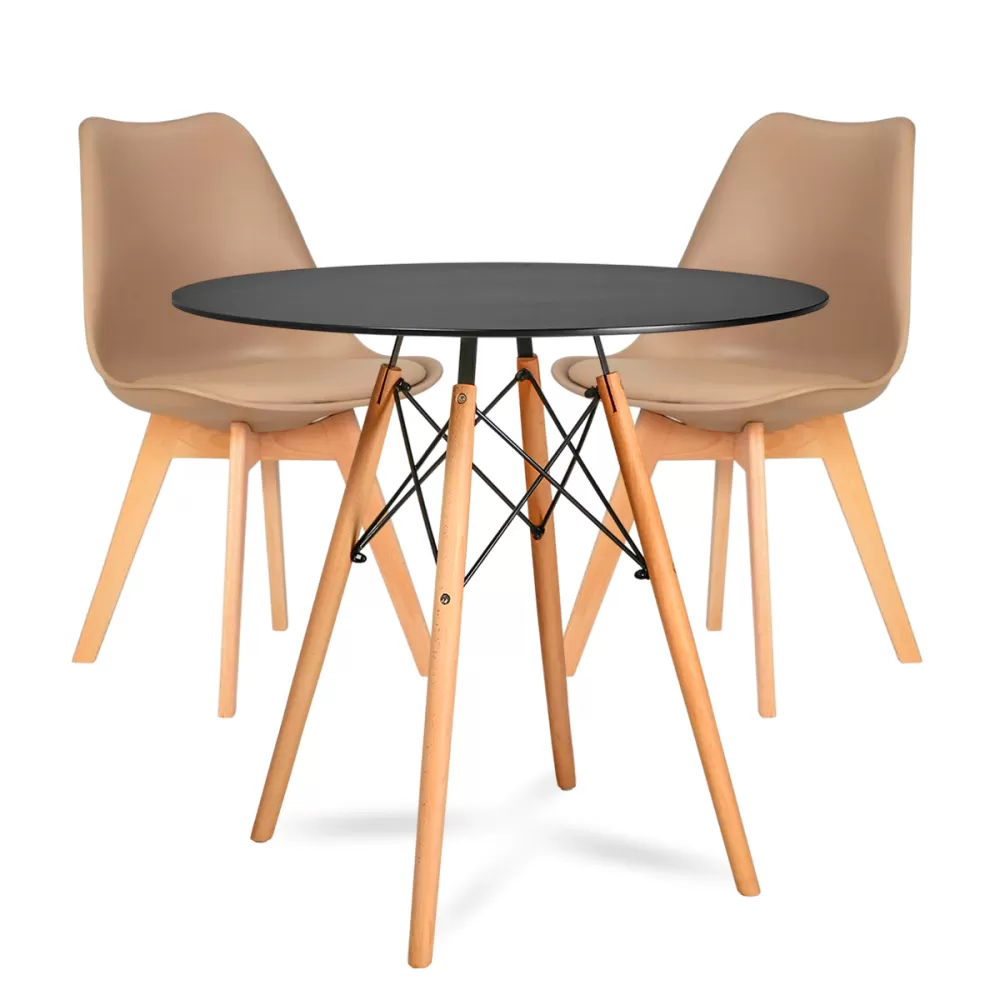 KIT MESA EIFFEL PRETO 90CM C/2UN CADEIRAS LEDA NUDE