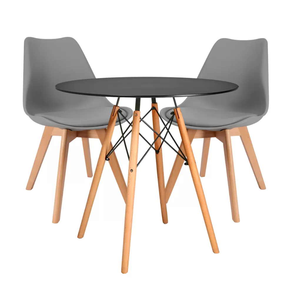 KIT MESA EIFFEL PRETO 90CM C/2UN CADEIRAS LEDA CINZA