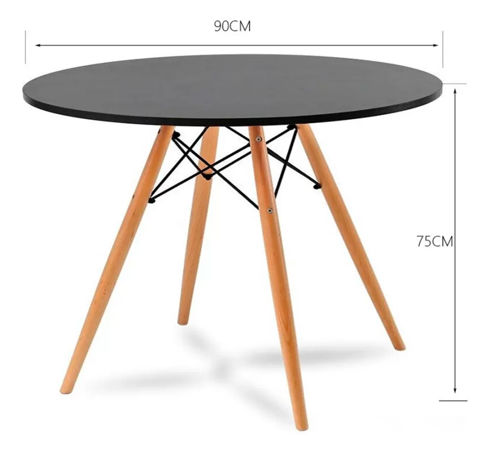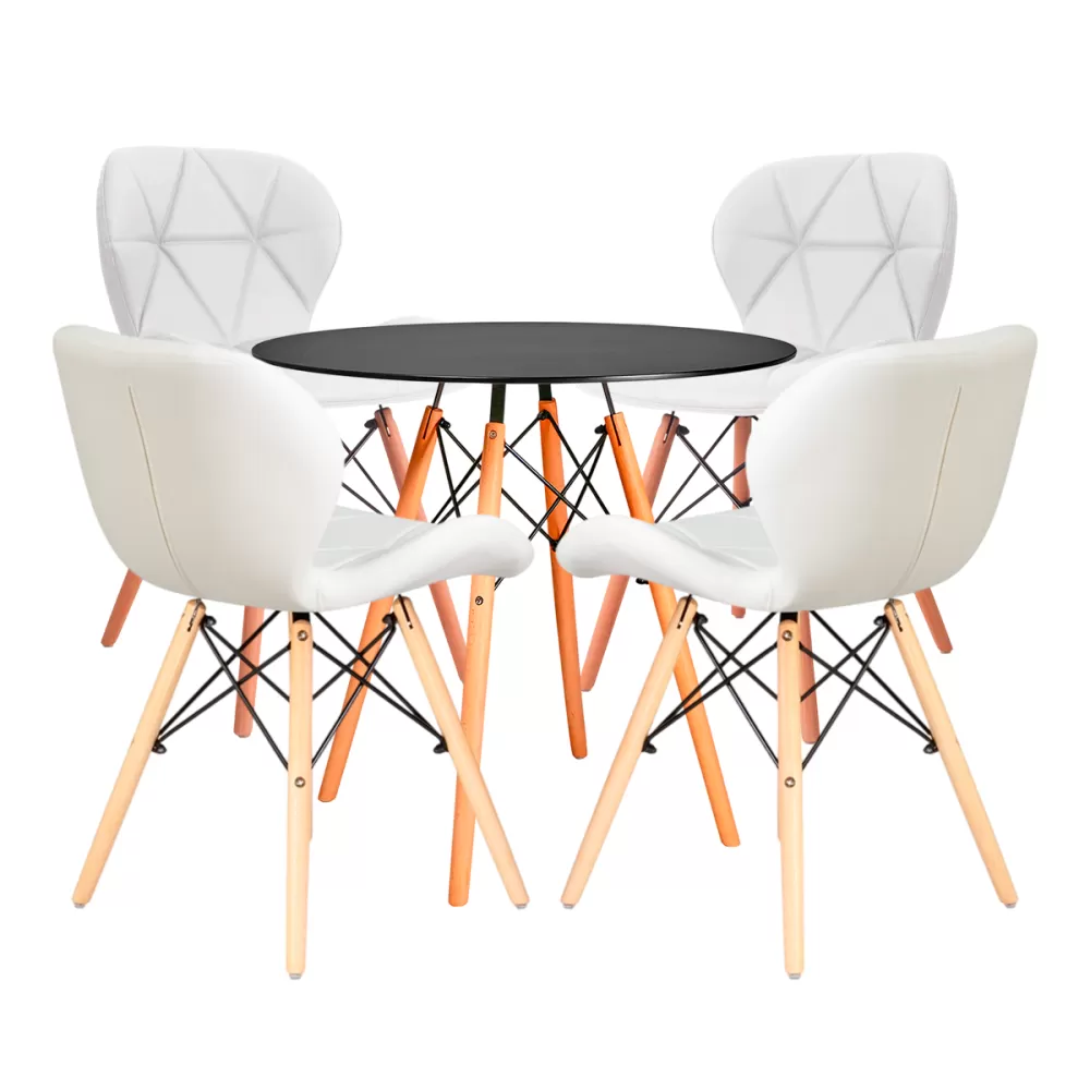 KIT MESA CHARLES EIFFEL REDONDA 90CM PRETA C/4 CADEIRAS SLIM EIFFEL BRANCA
