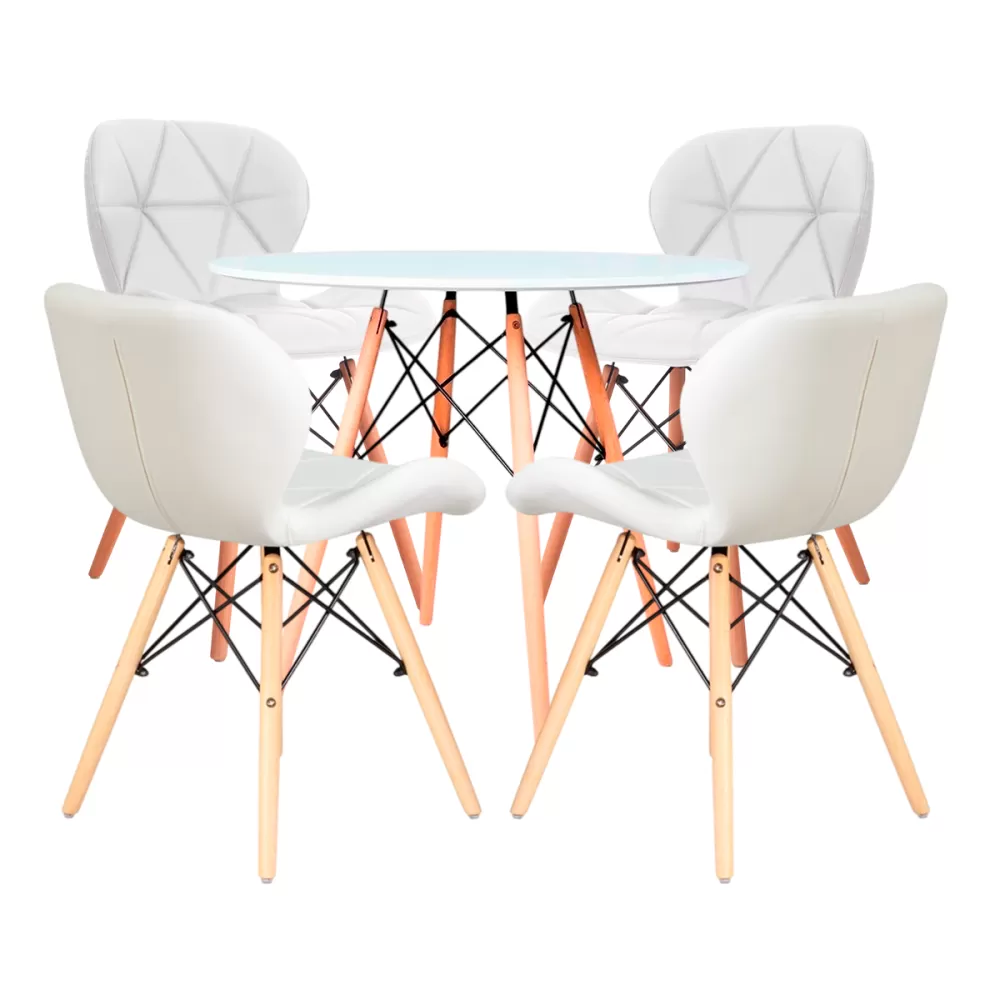 KIT MESA CHARLES EIFFEL REDONDA 90CM BRANCA C/4 CADEIRAS SLIM EIFFEL BRANCA