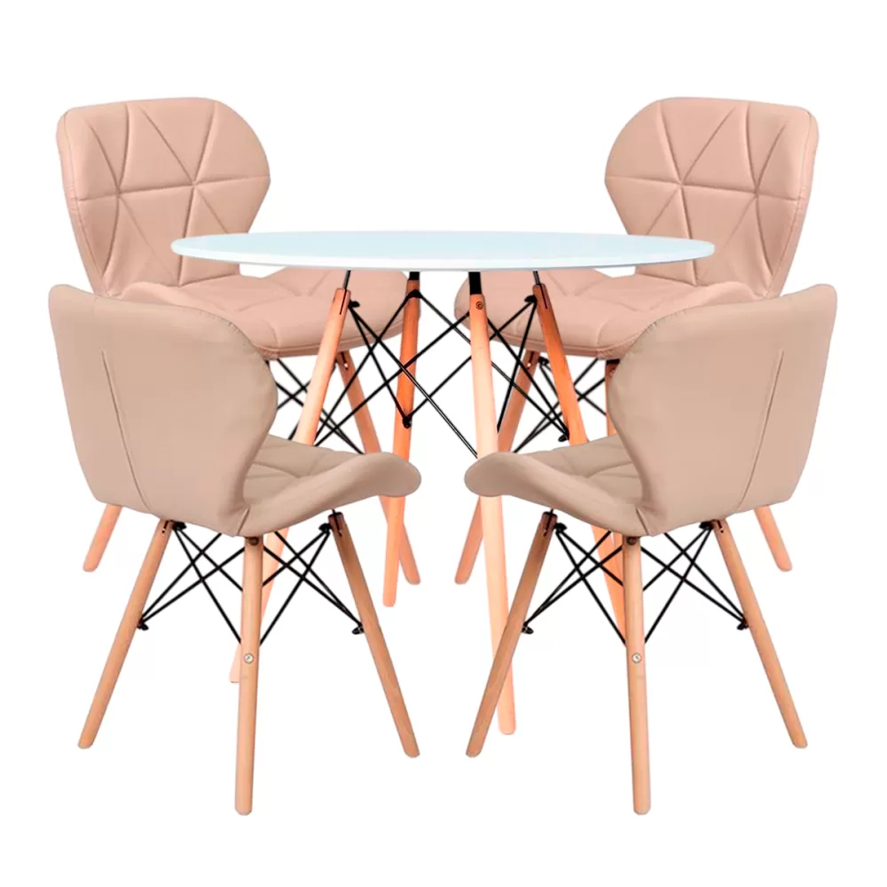 KIT MESA CHARLES EIFFEL REDONDA 90CM BRANCA C/4 CADEIRAS SLIM EIFFEL NUDE