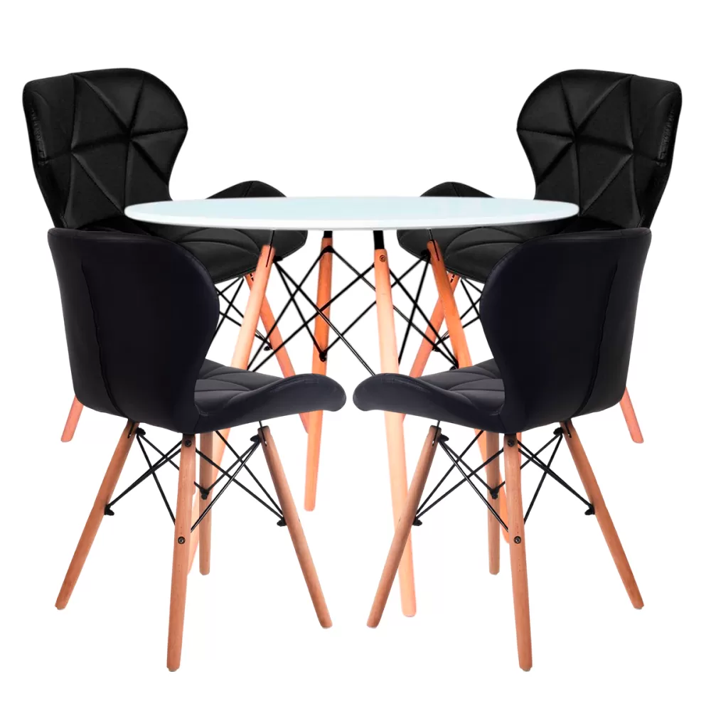 KIT MESA CHARLES EIFFEL REDONDA 90CM BRANCA C/4 CADEIRAS SLIM EIFFEL PRETA