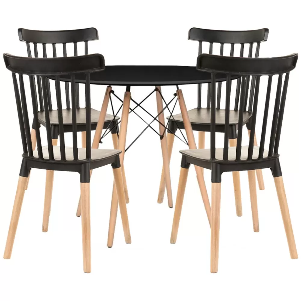 KIT MESA CHARLES EIFFEL REDONDA 90CM PRETA C/4 CADEIRAS WINDSOR PRETA
